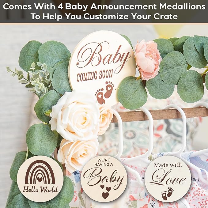 - Personalize Your Baby Shower Gift Basket - Spell out the baby's name with the two included letter sets and add a heartwarming touch with 4 pre-designed wooden signs like "Made With Love" or "Baby Coming Soon"