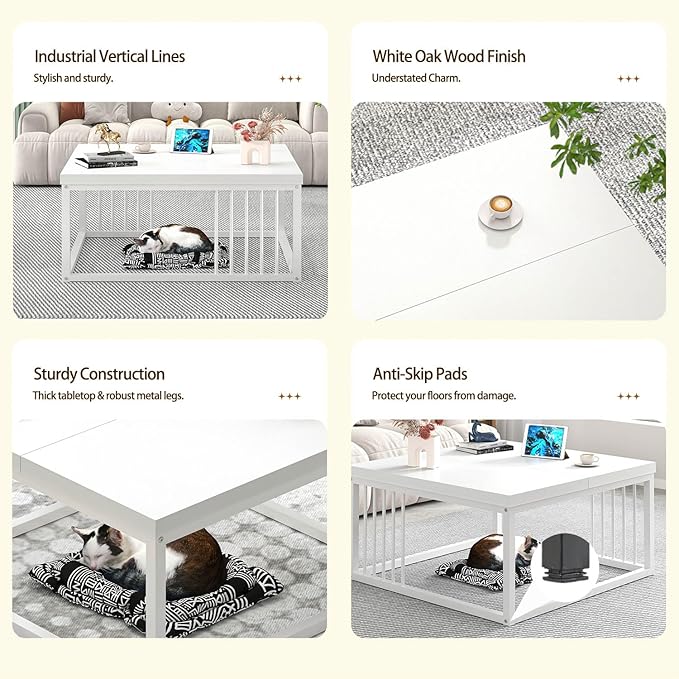 - Pet-Friendly Structure: The open framework not only allows for easy legroom but also provides a cozy space beneath the coffee table for pets to relax. The vertical bars along the sides add a touch of unique design and a playful element for cats and dogs