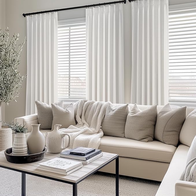 - Pinch Pleats Design: Each package includes 2 panels of pinch pleated curtain with 18 hooks and 16 metal rings, measuring 40"Wx108"L each panel. The adjustable hooks can raise and lower the height of curtains by 1 inch. There are 4 hanging options: ring hooks, clip rings, back tabs or track systems. With ready made ruffled pleated effect,the curtain sets(two panels) cover a total 80 inch width. Wide enough for any standard windows from 36w/48w to extra wide 60w/72w large windows