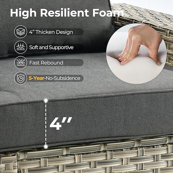 - All Weather & Durable: Selected anti-ageing treated thicken PE wicker rattan for UV resistant, wear resistant and all weatherproof. 3D strengthen and widen design for extended service life,twice service life as others