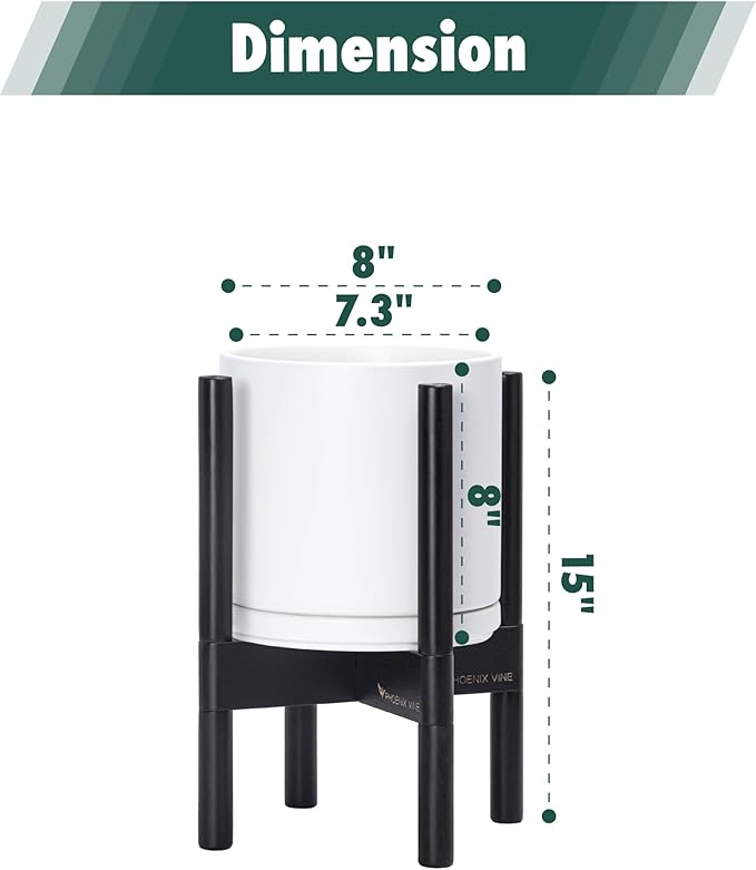 - A Complete Set: Mid-century ceramic planter, combined with a ebony wood stand that match perfectly together and looks great in anywhere.
