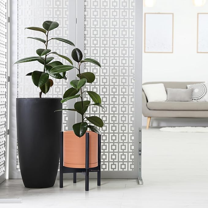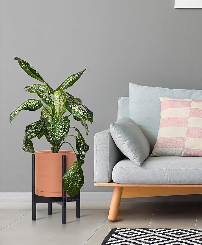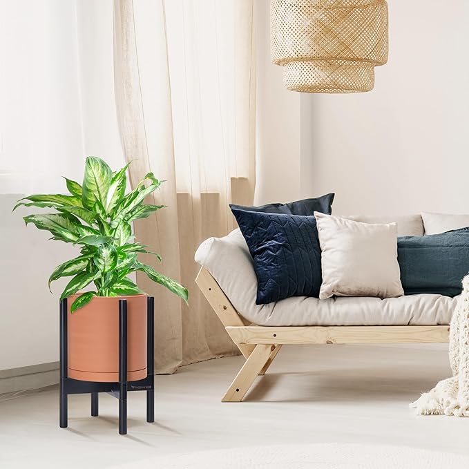 - A Complete Set: Mid-century terracotta planter, combined with a ebony wood stand that match perfectly together and looks great in anywhere.