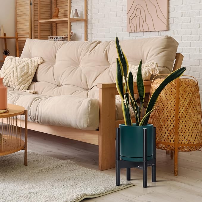 - A Complete Set: Mid-century ceramic planter, combined with a ebony wood stand that match perfectly together and looks great in anywhere.