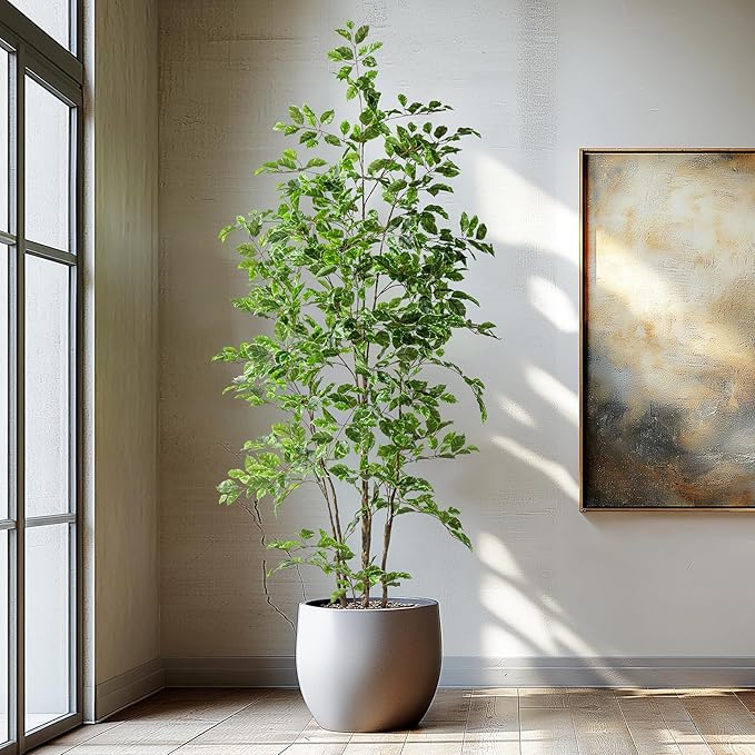 - ✅ ULTRA-REALISTIC DESIGN WITH HANDCRAFTED DETAILS:Featuring hundreds of individually sculpted leaves on flexible wire branches, this artificial ficus tree mimics natural foliage with varied shades of green. The textured trunk and lifelike silk/plastic leaves create depth – perfect for making your faux trees indoor look like living art. Display in any decorative planter for instant elegance.