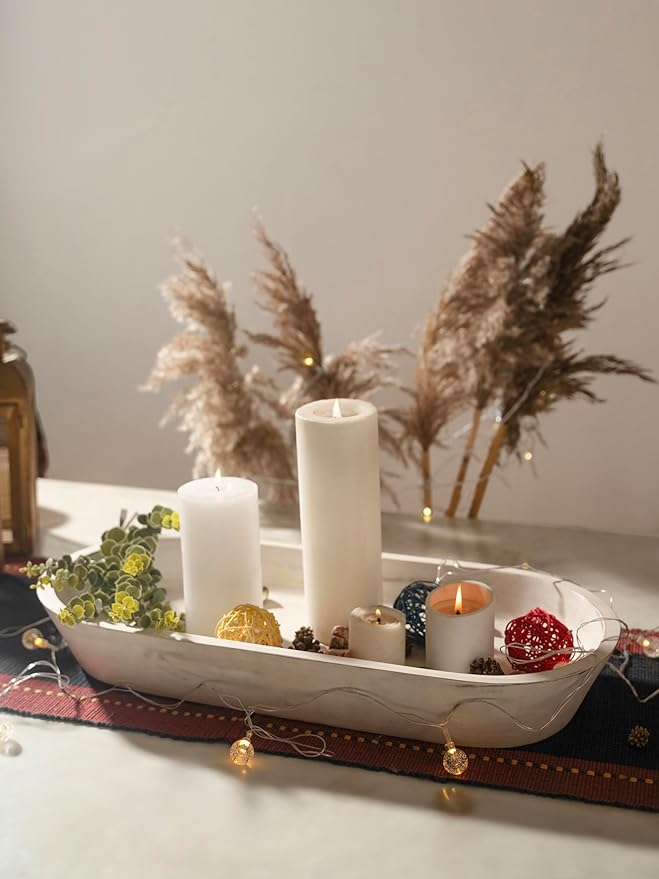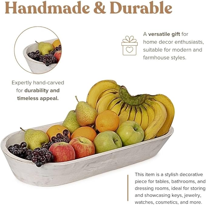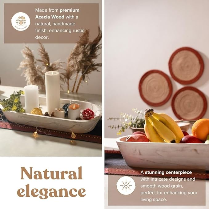 - HAND-CARVED: Our rustic white wood centerpieces for tables are carefully hand-carved from premium acacia wood, ensuring exquisite craftsmanship. Built to be durable and long-lasting, this wood decor bowl is not food-safe and ensures strength and longevity when used with dry foods or storage items.