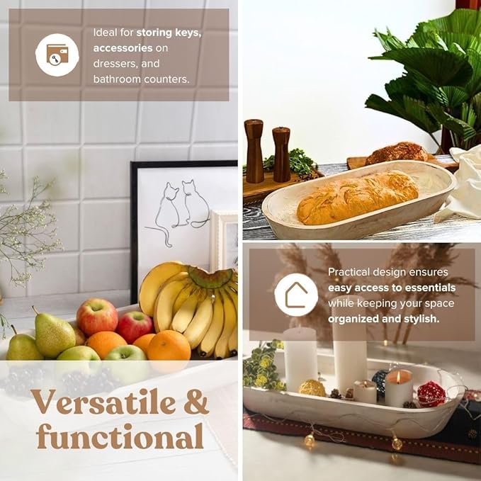 - WOODEN DOUGH BOWL: Elevate your space with our rustic white wood bowl. This large decorative bowl comes in a unique burnt wood finish that adds a touch of warmth to any space. Experience the beauty of imperfections in these one-of-a-kind wooden bowls for decor.