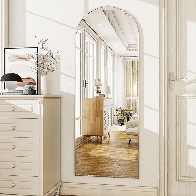 - Unique Design - This floor mirror is simply designed with premium arched-top frame, makes the full body home mirror more fashionable and luxury. The frame of floor length mirror is enough thin to make it more classic