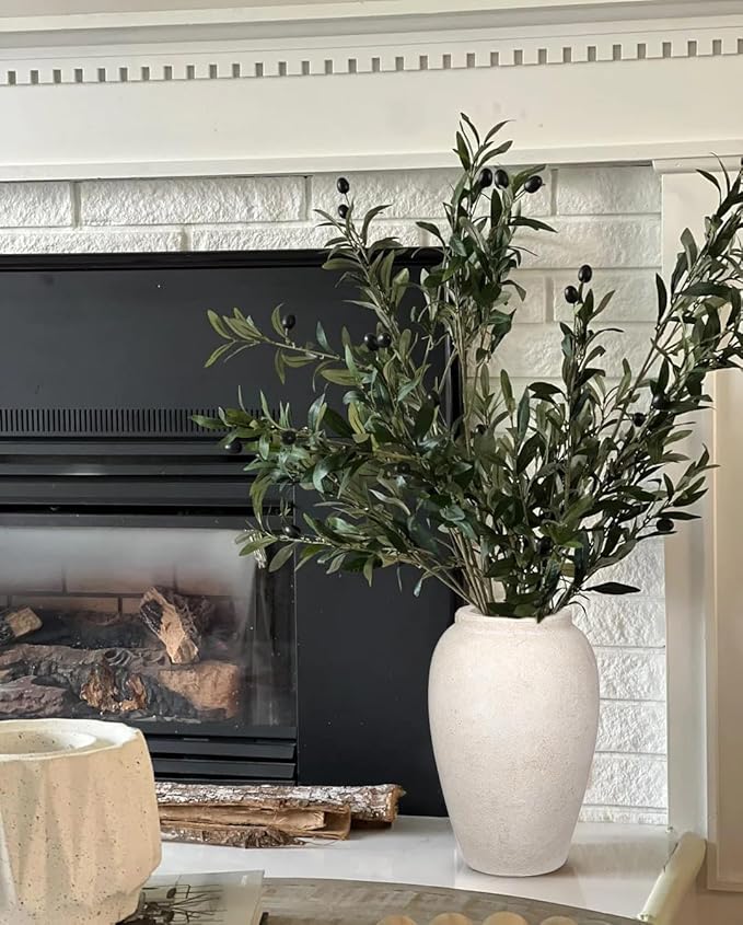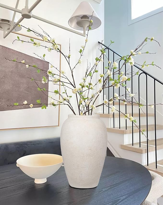 Handcrafted Flower Vase, 10.5" Tall Terracotta Vases, Vintage White Vase, Rustic Antique Décor, Wide Mouth, Matte Finish for Home Office Resto Café Decoration