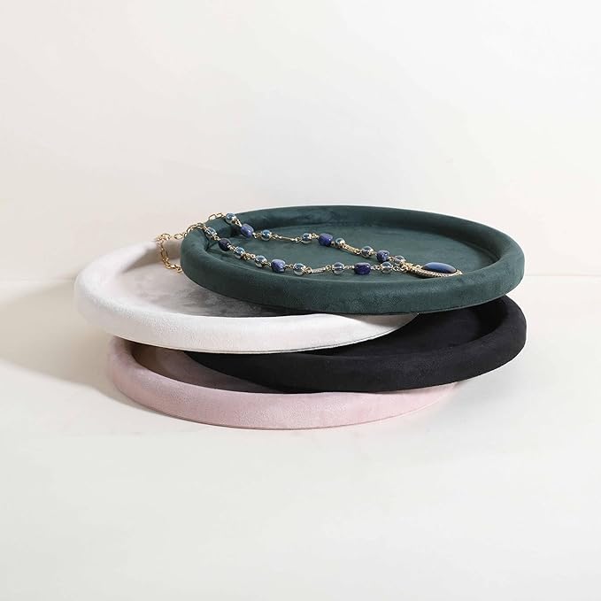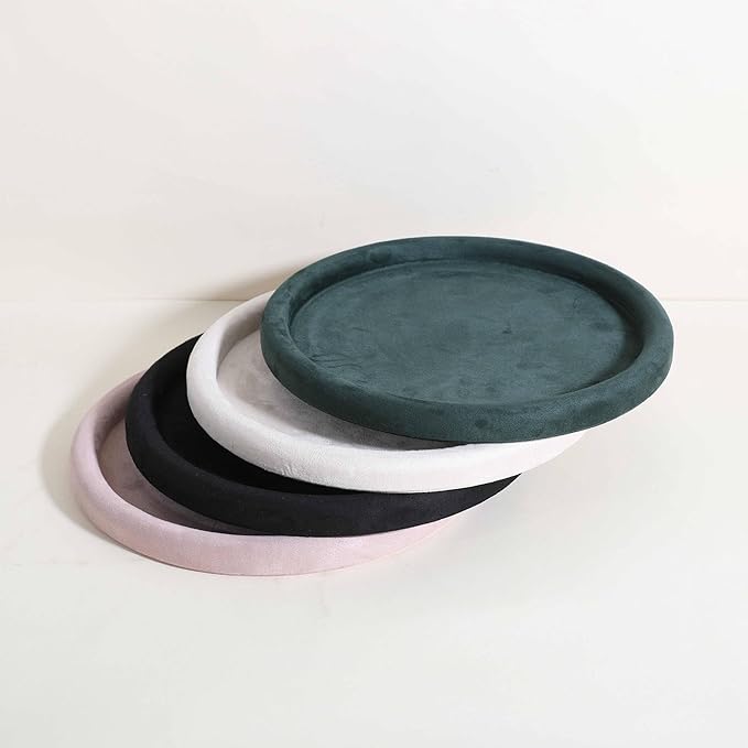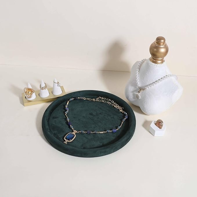 GemeShou Round Jewelry Organizer plate, Top Microfiber velvet Jewerly display tray, Empty Jewelry showcase tray for Necklace Bracelet Ring Earring display stand holder (Green-Large, 9.8 x 9.8 in)