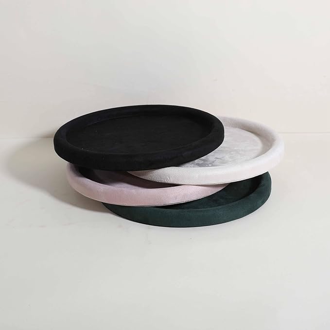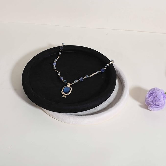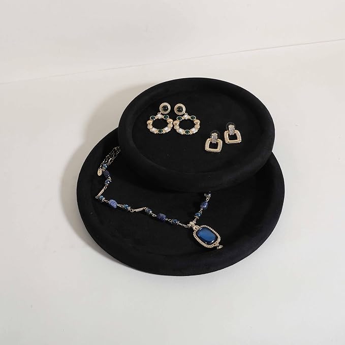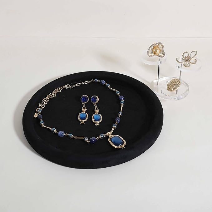 GemeShou Round Jewelry Organizer plate, Top Microfiber velvet Jewerly display tray, Empty Jewelry showcase tray for Necklace Bracelet Ring Earring display stand holder (Black-Large, 9.8 x 9.8 in)