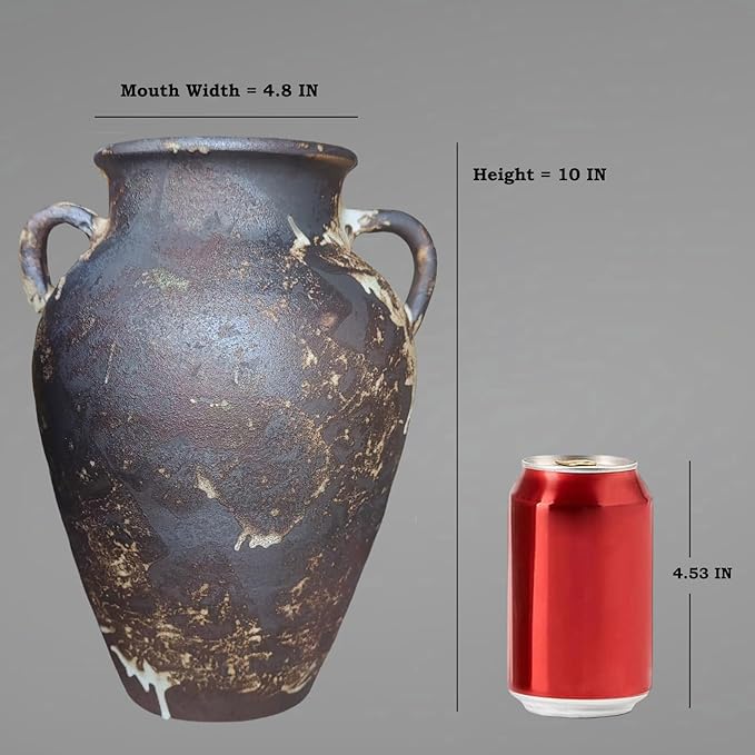 - ✿ COLORING & DIMENSION: The overall color of this terracotta vase will show black iron base color and partial white glaze as floating color. Because it is handmade, the vase weight may fluctuate slightly. The range will be 3.9 ~ 4.5 pounds. The dimensions are about 10.2"*7.2", and they may fluctuate by about 0.5 inches.
