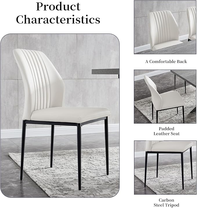 - 4. About Modern Dining Chair: This Leather dining chair is made of high-quality PU leather wrapped with high elastic sponge, which is comfortable and easy to clean. U-shaped cushion relaxes your hip muscles, carbon steel legs will not deform.