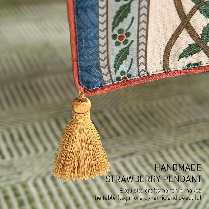 - Unique Design:Each table runner features patterns hand-drawn by our designers,showcasing exquisite details and rich textures for stunning visual appeal.The meticulous stitching ensures a smooth,wrinkle-resistant,and durable finish.With its fresh,rustic yet elegant style,it adds vibrancy and charm to your home decor