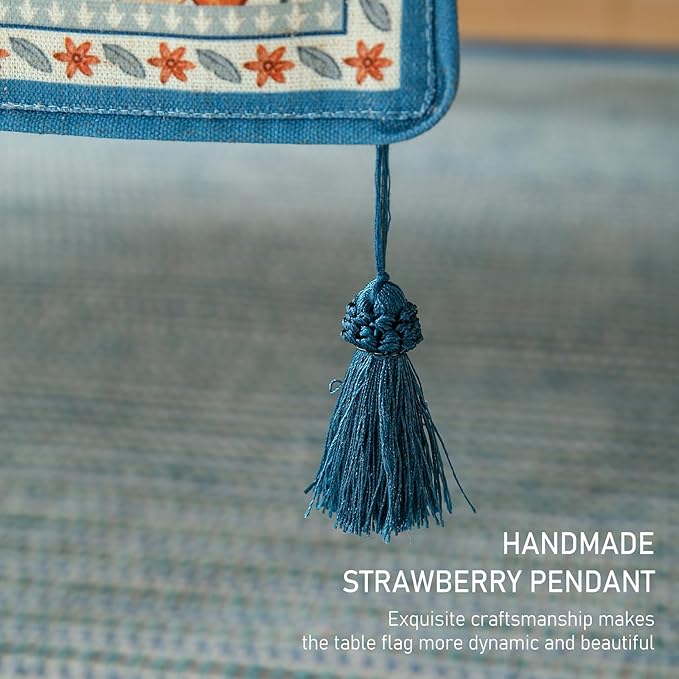 - Unique Design:Each table runner features patterns hand-drawn by our designers,showcasing exquisite details and rich textures for stunning visual appeal.The meticulous stitching ensures a smooth,wrinkle-resistant,and durable finish.With its fresh,rustic yet elegant style,it adds vibrancy and charm to your home decor
