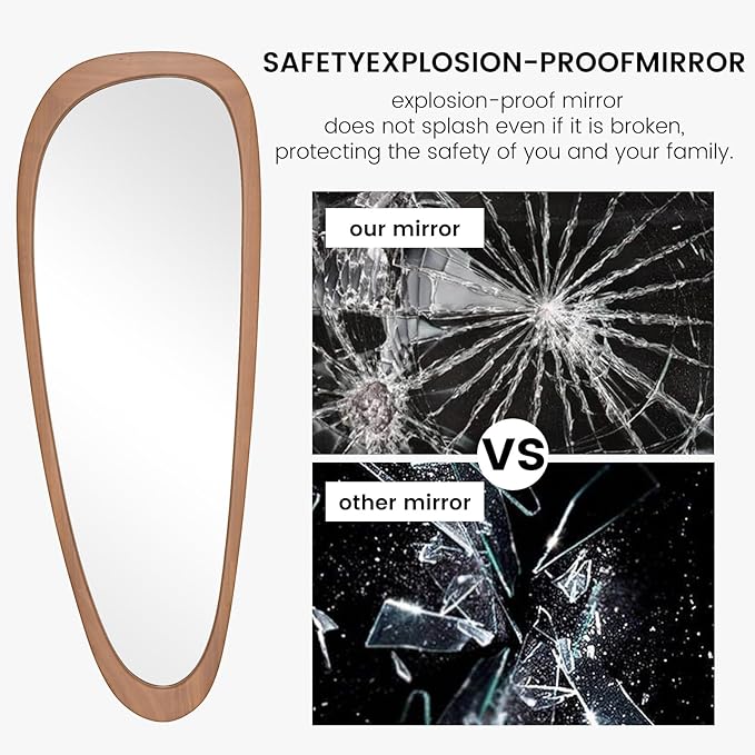 - EXCELLENT QUALITY: Using high quality solid wood frame, HD reflection effect. The asymmetrical wall mirror made with a explosion-proof materials, such as accident damage, the mirror glass will not be scattered around, to ensure your safety!