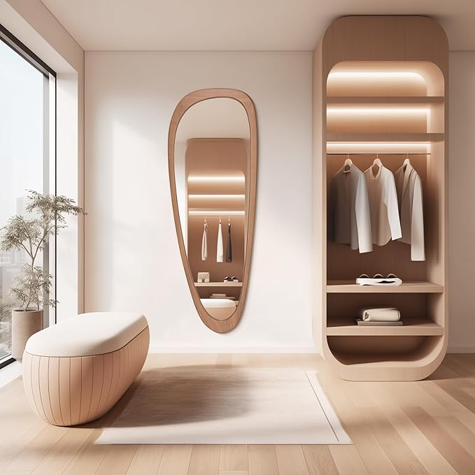 - IRREGULAR DESIGN: The irregular full length mirror is look like a art, to make the room of the house look more interesting. This asymmetrical abstract irregular-shaped mirror perfectly fits wall decor and artistic display for the living room, bedroom, bathroom, or hallway and entry wall.