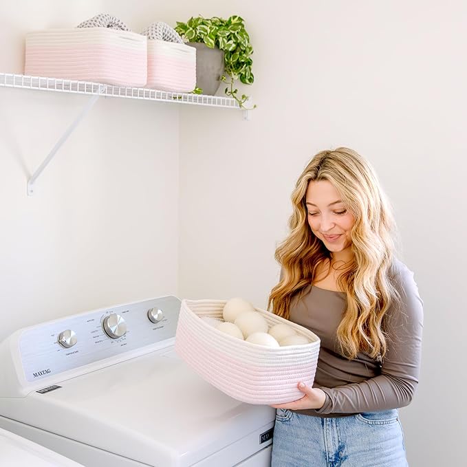 - Safe, Natural Cotton Organizer Bins: Crafted from the highest quality material in the market, our storage bins are oh-so-sturdy (and cute) and ready to take on little humans. They’re 100% safe, so you can rest easy if teething toddlers take a nibble. Reinforced Hidden Handles: Now you see ‘em, now you don’t! With completely hidden handles that blend seamlessly into the rope basket, you’ll be the Houdini of home organizing. They’re even double-stitched and reinforced for extra heavy loads!