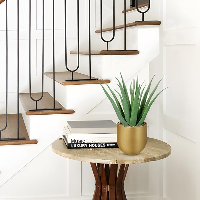 Briful Succulents Artificial Plants Realistic Agave Plant, 4.7'' Gold Metal Pot, Farmhouse Aloe Vera Fake Plants for Home Office Desk Bathroom Shelf Decorations