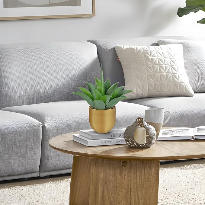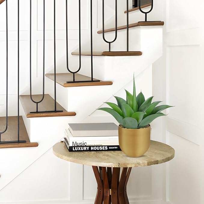- LUXURIOUS GOLD METAL PLANTER: Housed in a sleek 4.5'' x 4.7'' gold metal pot, this faux succulent adds a touch of elegance and contemporary shine—perfect for minimal or glam-inspired interiors.