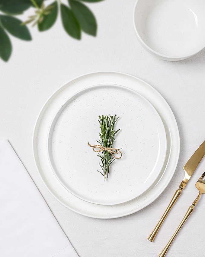 TheTerra Ceramic Dinnerware Sets for 4, 12 Pieces Porcelain Lightweight Plates and Bowls Sets, Scratch Resistant Dish Set, Oven & Microwave & Dishwasher Safe, White Speckled