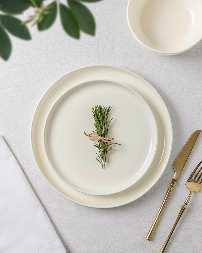 - STACKABLE & EASY TO CLEAN: Our dinnerware set is designed to be stackable. making it ideal for space-saving storage in your kitchen cabinets or pantry. This design helps free up space for other dining sets. The smooth surface makes them easy to clean. You can wash them with soap and hot water, or simply place them into your dishwasher.