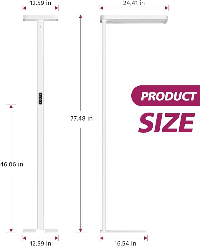 - Dual Panel Lighting: EMITEVER LED floor lamp, unique dual light source design with upper and lower panels, spreads light evenly throughout the entire space through ceiling diffusion, Rectangular 24.41''x12.59'' lamp head contains 572 lamp beads, which better provides bright and comfortable wide-area lighting