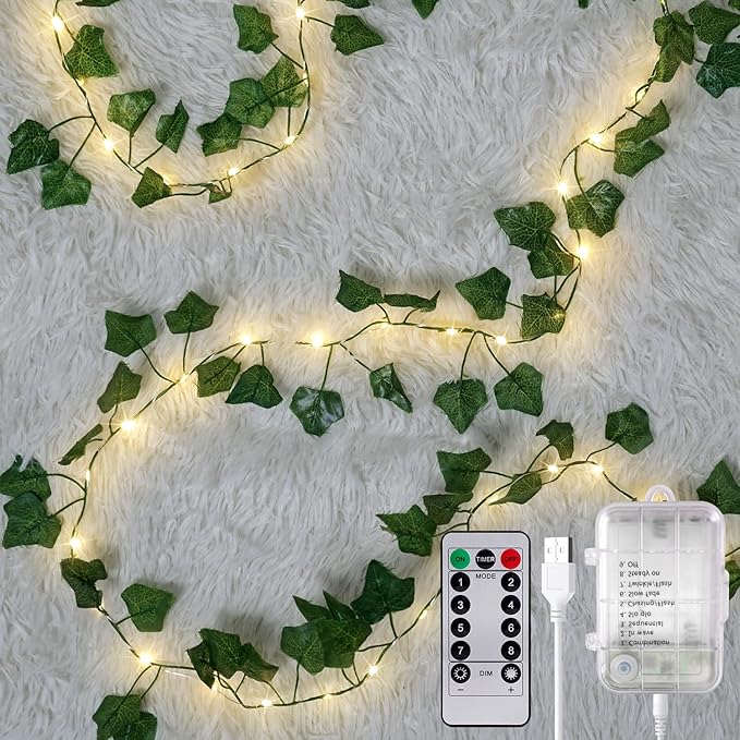- Realistic Greenery:The lifelike leaves of our fairy lights are made of high-quality, UV resistant and waterproof faux silk fabric, and the stems are made of flexible plastic. Each ivy vine has 120 bright warm white LED beads dotted in 40ft copper string that makes your decoration more beautiful, warm, natural and romantic