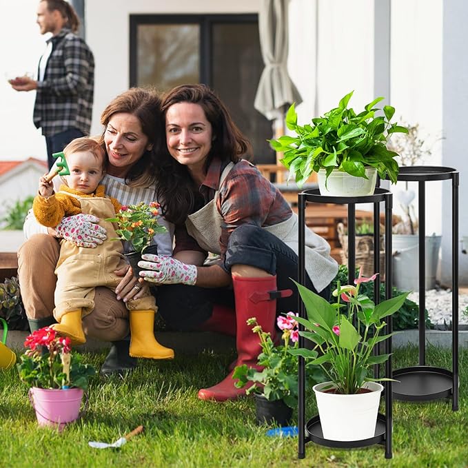 - 【Easy to Assemble】Our plant stand has 2 removable tray ,super easy to put it together in minutes. You only need to adjust and fix the screws on the shelf, and then place the round tray on the shelf to complete its assembly.(With installation instructions)