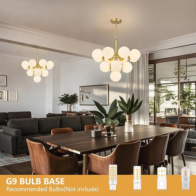 - 【Bulb Requirement】Each gold chandelier light fixture needs a basic bulb of 13* G9 (note: bulbs are not included); It is fully dimmable when using dimmer bulbs and compatible dimmer switches (excluding dimmer switches)