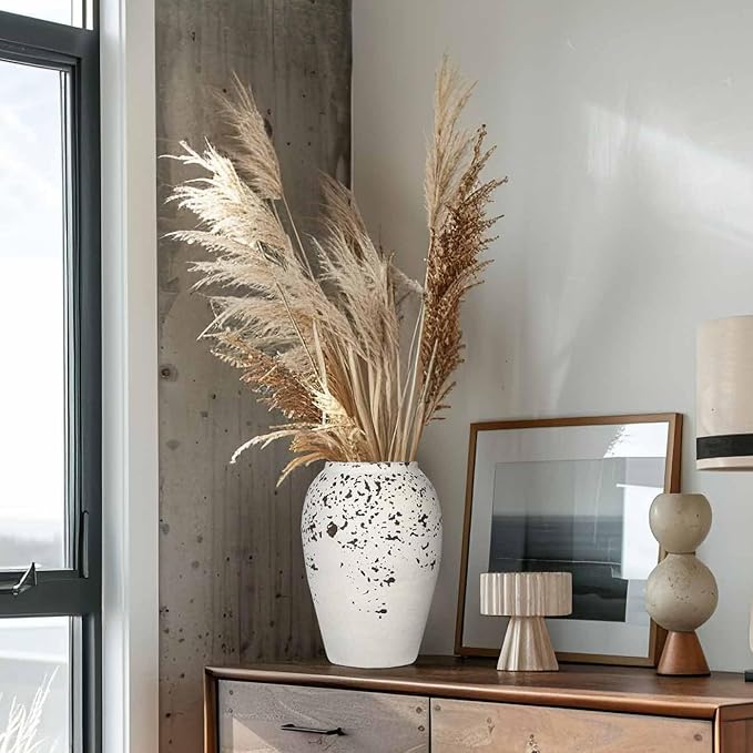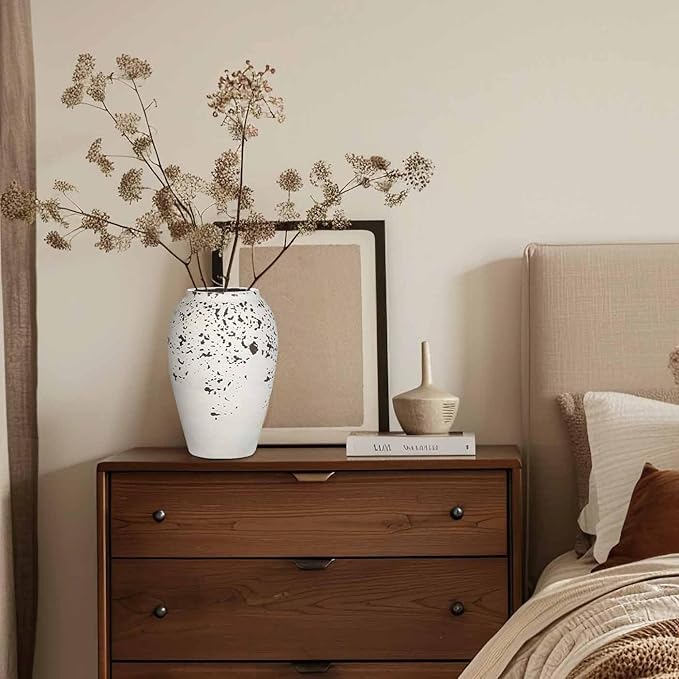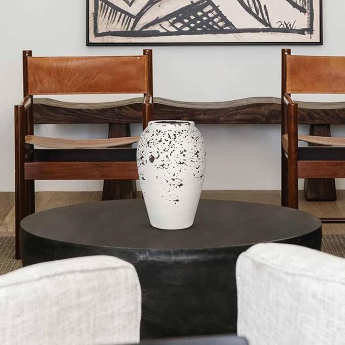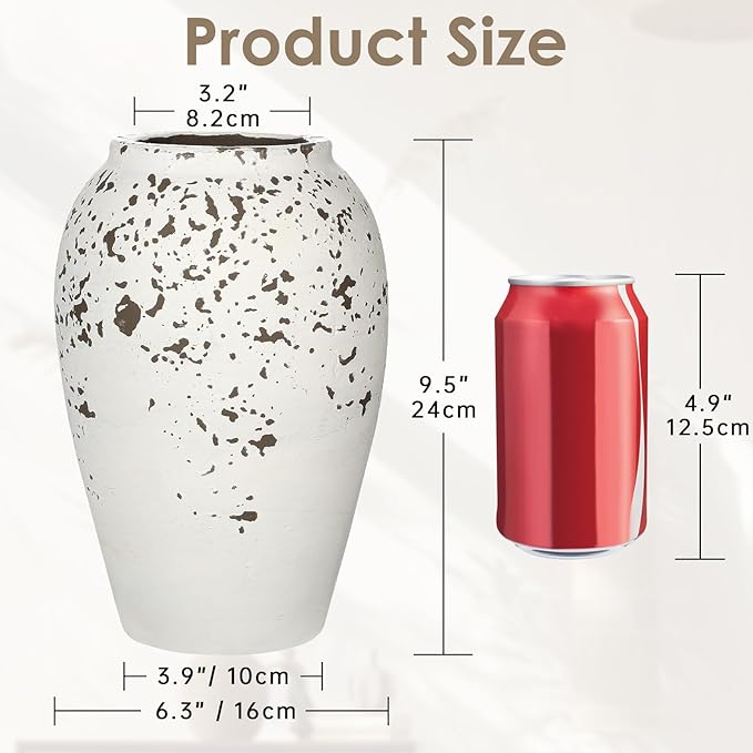 Handcrafted Flower Vase, 9.5" Tall Terracotta Vases, Vintage Rustic Ceramic Vase Décor, Wide Mouth, Matte Finish for Home Office Resto Café Décor