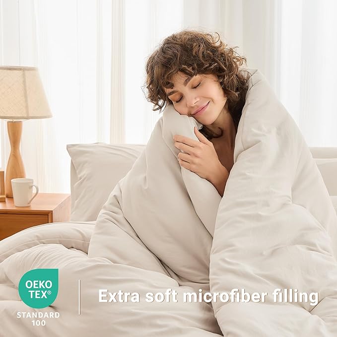 - Cloud-Like Filling: Filled with lightweight down alternative filling, this beige comforter provides a soft and fluffy feel that mimics the warmth of natural down without the added weight, making it ideal for year-round use