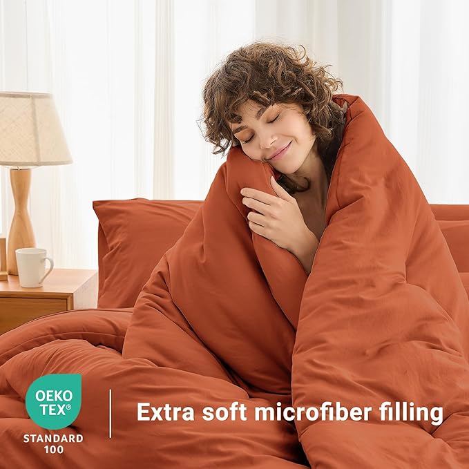 - Cloud-Like Filling: Filled with lightweight down alternative filling, this burnt orange comforter provides a soft and fluffy feel that mimics the warmth of natural down without the added weight, making it ideal for year-round use