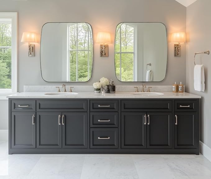 - True Reflection: This vanity bathroom mirror features a 4mm HD glass surface, delivering flawless, distortion-free reflections. Its scratch-resistant and shatterproof design ensures durability, while the easy-to-clean surface maintains a perfect shine with minimal effort