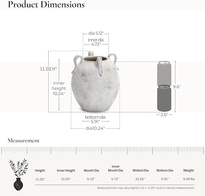 - Beautiful Design: The four-handle design enhances ease of movement and adds a unique flair to this gray and white ceramic vase with a vintage touch, perfect for room decor and home aesthetics