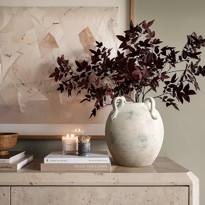 - Vintage Elegance: This large round ceramic vase, with its old-world charm, is ideal for living room decor and large vases for a sophisticated floral display.