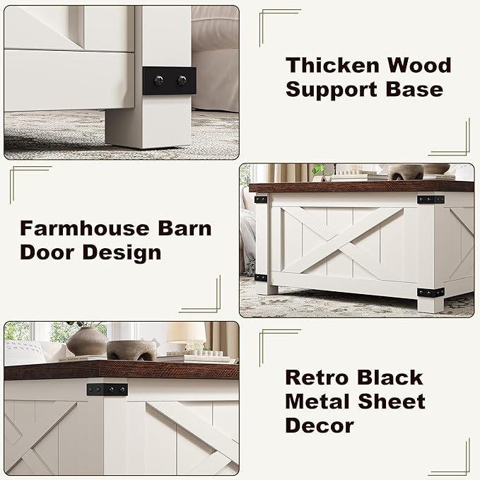 - 【Farmhouse Coffee Table】The farmhouse coffee table is crafted from its original wood grain, classic farm barn shape design with metal corners decor. With coffee table's sturdy build and charming rustic look, evoking the nostalgic feeling of modern country and retro industrial styles, it goes well with most living room furniture and the decor styles all complement each other
