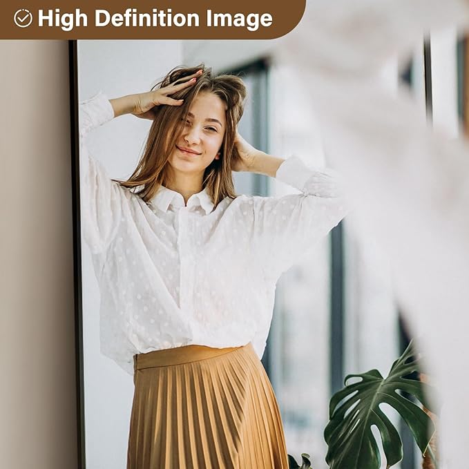 - Aluminum Alloy Mirror Frame: The sturdy aluminum alloy mirror frame is designed for durability, with a special coating to prevent rust and maintain its sleek appearance. This floor mirror is easy to clean and suitable for various settings, making it an ideal choice as a bathroom mirror, dressing mirror, decorative mirror or standing mirror