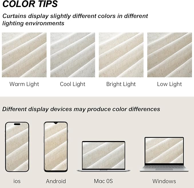 - Upgraded Linen Fabric: Our natural linen curtains are crafted from upgraded natural linen and imported polyester blended fabric, which possesses more flax linen fibers than other normal linen curtains. Richer linen texture brings a delicate look and a natural cozy feeling. The poly-linen combination is a more cost-effective option, with greater durability and wrinkle resistance