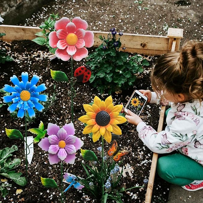 - Decorative Garden Stakes: Add a touch of elegance to your outdoor space with this set of 4 metal flower garden stakes.