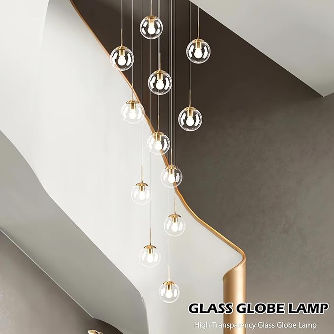 - [Dimension Design]:This gold globe chandelier includes 12 x 6-inch globe shades and the ceiling tray is 23.6 inches in diameter. The total height of this chandelier is 118 inches The cable cord is adjustable and the overall shape of the fixture is simple and smooth DIY styling can be done as needed