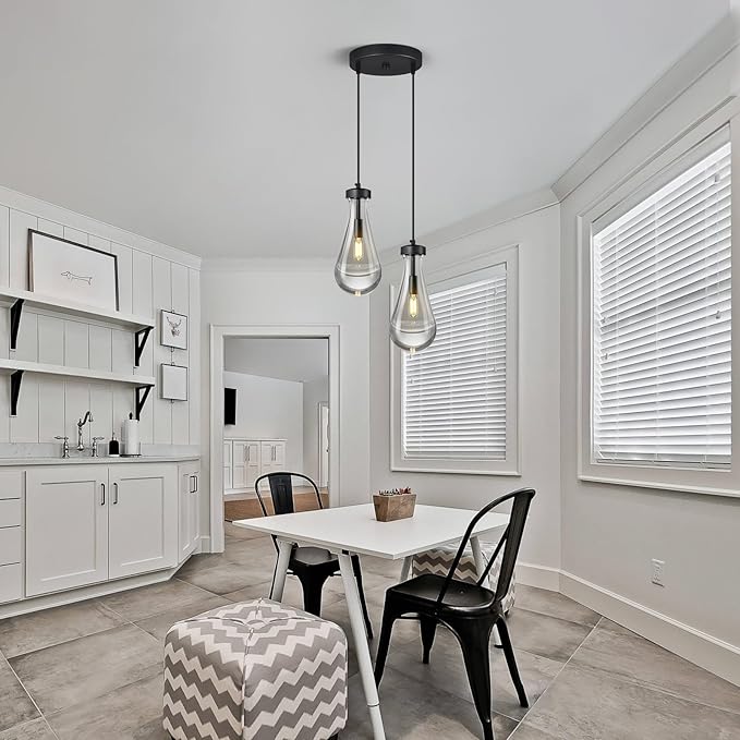 - 【Teardrop Design】This teardrop-shaped pendant light fixture features a unique design that combines modern and natural elements, creating a rich light effect and adding a premium feel to any space. Additionally, thin glass is highly transparent, allowing light to pass through more effectively for a brighter and better-diffused lighting effect.