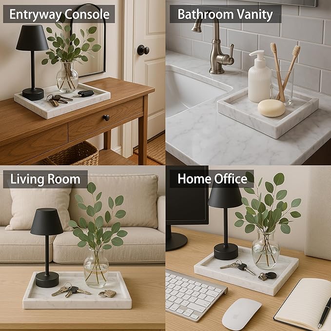 - TIMELESS DECOR FOR ANY ROOM: This decorative marble tray elevates any space, whether it’s your bathroom countertop, vanity table, or living room coffee table. Its minimalist design complements modern, rustic, and traditional interiors, making it the perfect high-end gift.