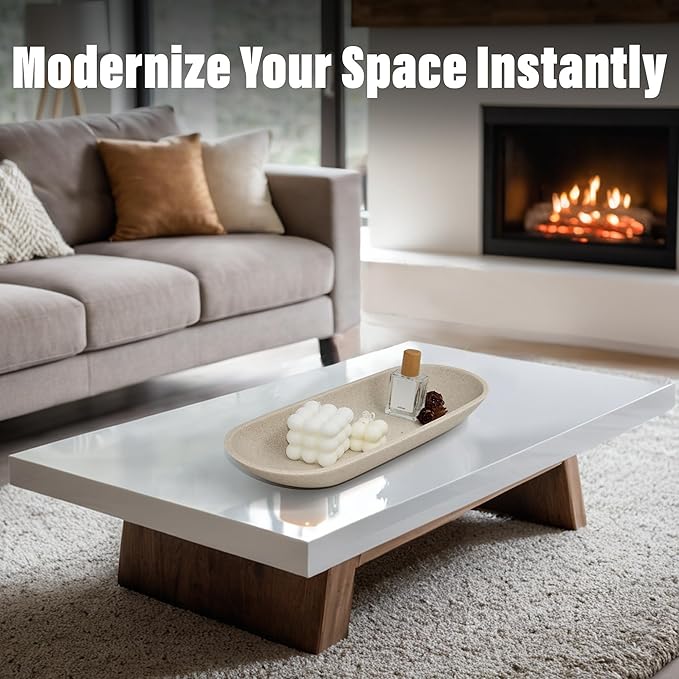 Large Decorative Bowl for Home Decor - Long Dough Bowl with Anti Slip Base for Table Centerpieces - Beige Minimalist Design Dough Decor Bowl for Coffee Table, Dining Table Centerpiece