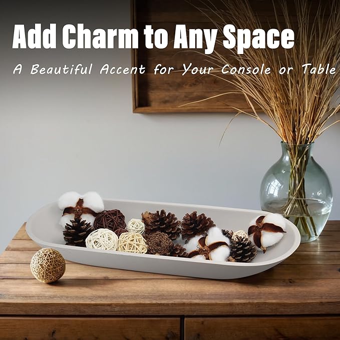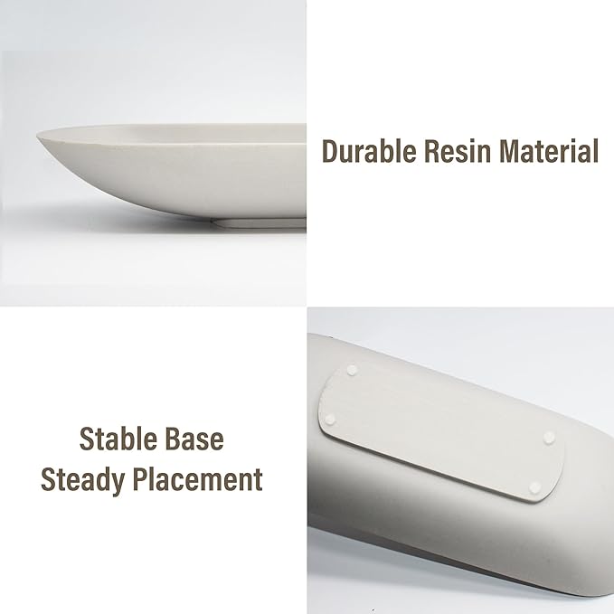 Large Decorative Bowl for Home Decor - Long Dough Bowls with Anti Slip Base for Table Centerpieces - Grey Minimalist Design Dough Decor Bowl for Coffee Table, Dining Table Centerpiece