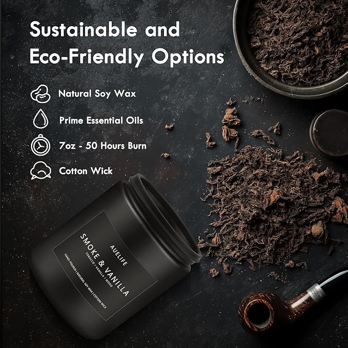 - A Candle for the Bold -- Vanilla & Tobacco candle, are for those who crave depth, warmth, and a touch of mystery. This candle bring the rugged sophistication of a cozy, intimate lounge right into your home. If you’re someone who appreciates the bold and refined, the Whiskey & Tobacco + Smoke Vanilla candle might just become your new favorite.
