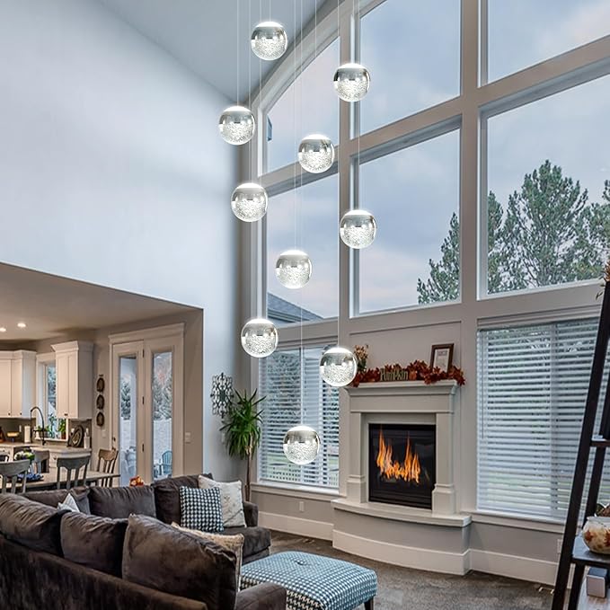 LED Staircase Chandelier Crystal Globe Pendant Light Large Chandeliers for High Ceiling,10-Lights Hanging Flush Mount Lighting Fixtures for Foyer,Entryway,Living Room