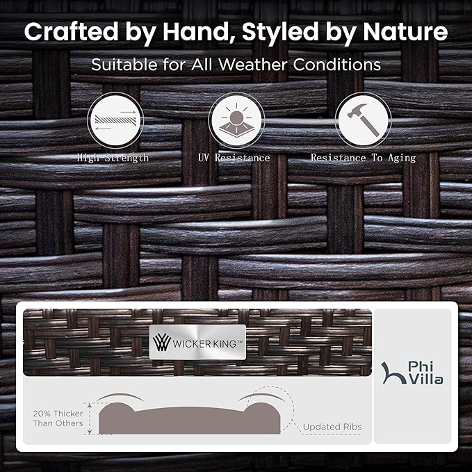 - 【Wicker & Iron Furniture Combo All-weather Resistant】 Wicker offers comfort & natural beauty, while the iron structure provides sturdy support & stability, making patio furniture both comfortable & durable.Iron surfaces are coated with E-COATING and POWDER-COATING to prevent rust and withstand harsh weather. Each seat of our heavy duty outdoor furniture can hold up to 350lbs