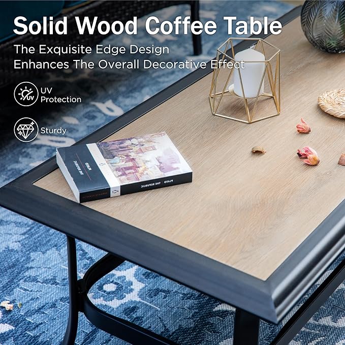 - 【Wood Grain Coffee Table】The unique faux wood grain design coffee table maintains the natural beauty of wood while avoiding the maintenance issues of wood. The use of E-COATING and POWDER-COATING technology can be adapted to all kinds of weather, guaranteeing long-term use