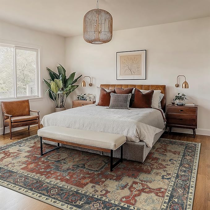 - Soft & Well Designed: This area rug captures the opulence of vintage design with intricate floral patterns in harmonious shades. Made from high-quality low pile soft fibers, it provids a certain degree of cushioning for the feet. This vintage rug skillfully captures a blend of classic, modern, boho, faded, delivering not just striking design but also a sumptuously soft texture. The pattern and color vividly match the images, with consistent coloring throughout the entire piece.