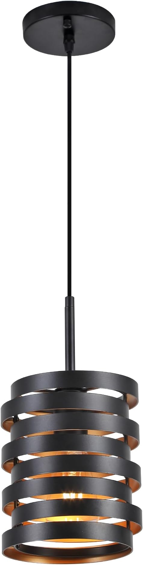 - Rustic Farmhouse Style -- Farmhouse pendant light was made by a skilled craftsman. The light body is composed of 8 rings black with gold interior decoration, arranged in 8 tiers to create a very unique look. The stacked rings will cast beautiful light and shadow under the irradiation of the light.
